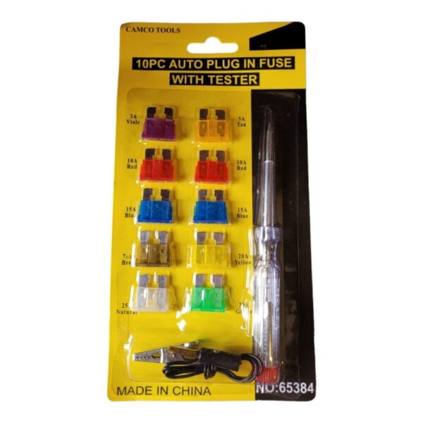 10pc Auto Plug Fuse With Tester