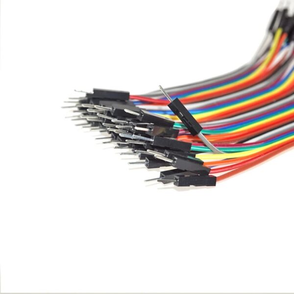 The set of wires consists of 40 pieces. Each piece measures 15 cm and has male type connectors at both ends.