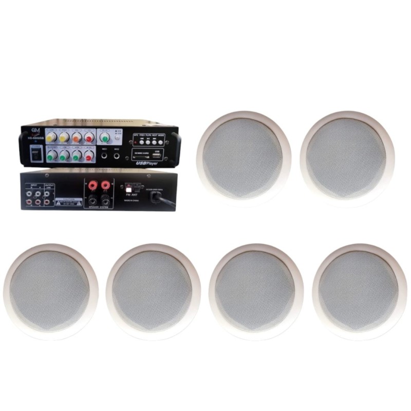 HS-666USB Amplifier 60W Ohm + 6-pcs 6W 215mm 4Ω Ceiling Speaker