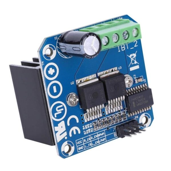 This motor driver is based on BTS7960 which is ideal for driving powerful engines and capable of delivering currents up to 43 A.