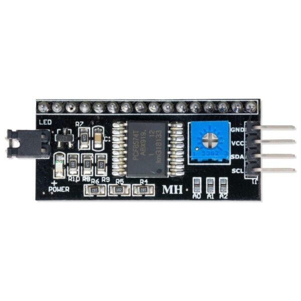The I2C LCD backpack is a small PCB that can be soldered onto the back of LCD allowing it to be controlled using an I2C bus. This is compatible with LCDs that use HD44780 display controller.
