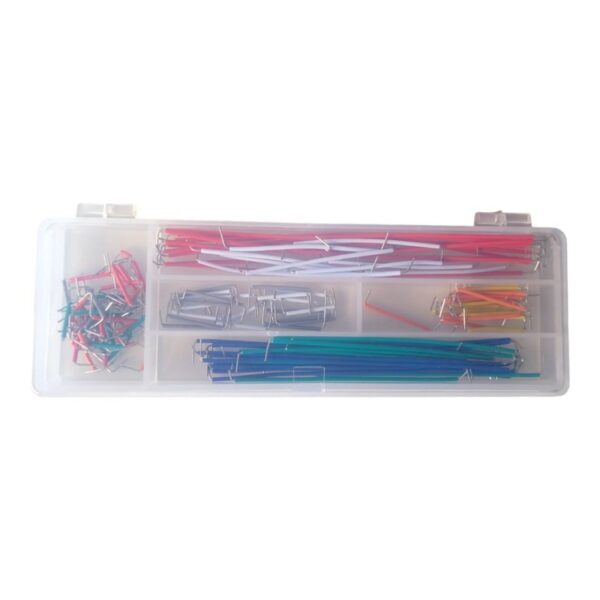 This set contains an assortment of about 140 colored wire jumpers, 14 lengths with 10pcs each.